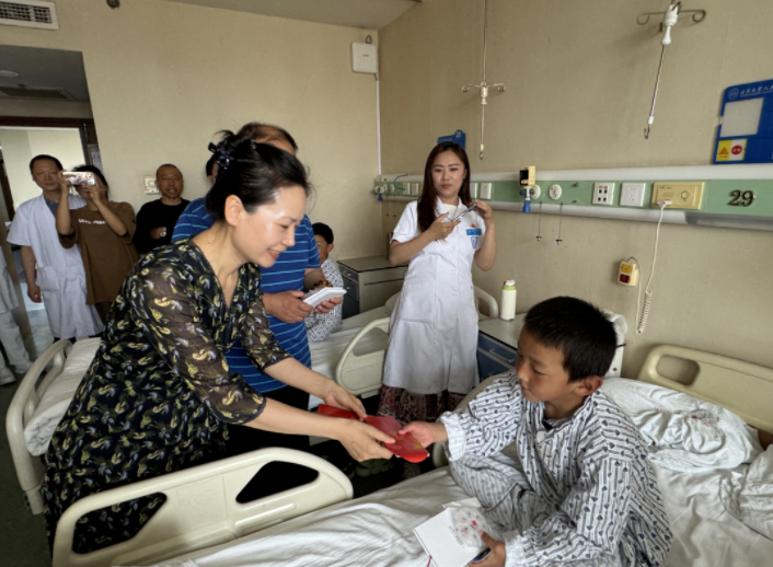 市红基会副理事长刘庆于7月11日赴北京大学人民医院慰问患儿及家属,鼓励患儿及家属安心配合治疗,让孩子们早日康复返家。